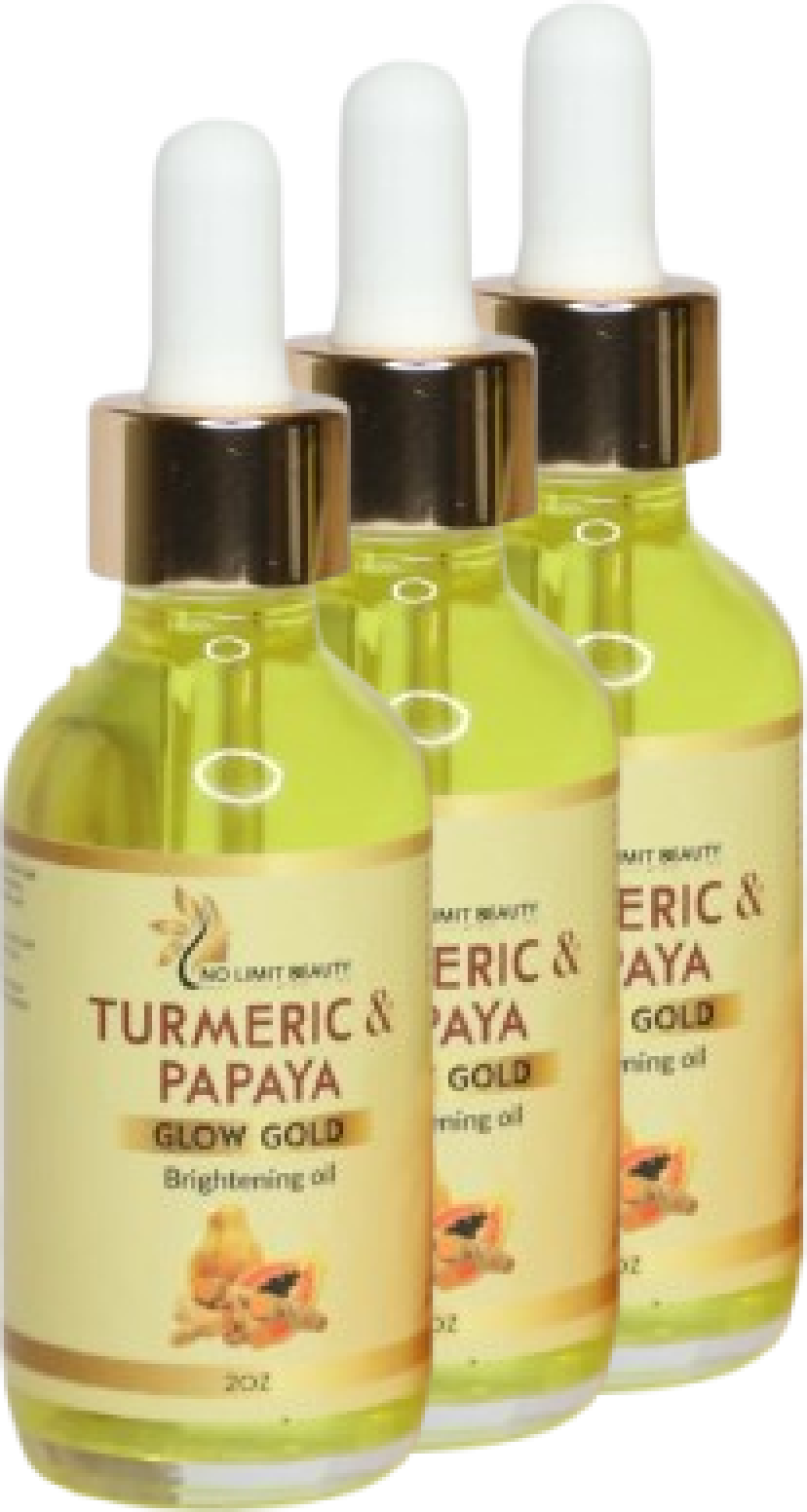 The No Limit Beauty Turmeric & Papaya Glow Gold Oil is a nourishing facial oil designed to brighten, hydrate, and improve overall skin tone. Infused with turmeric, papaya extract, and nutrient-rich oils, it helps reduce dark spots, even out discoloration, and enhance your natural glow while keeping the skin soft, smooth, and deeply moisturized.